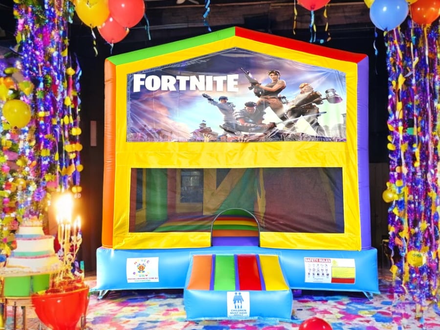 Transform your party into an unforgettable event with the vibrant and exciting Fortnite jumping castle House ! Perfect for children under 18, this colorful inflatable is designed to captivate kids' imaginations and keep them entertained for hours. Featuring a ladder climb, slide, and basketball hoop, this jumping castle ensures endless fun while offering a safe environment for children to play.