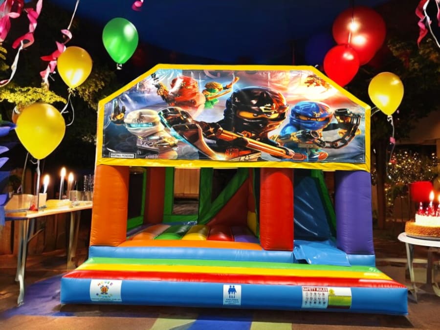Experience Endless Fun with the Lego Ninja Jumping Castle Open 5mx5m. Welcome to a world of vibrant colors and exhilarating play with the Lego Ninja Jumping Castle Open 5mx5m. Perfectly crafted for endless fun, this rainbow-themed inflatable offers a dynamic play experience that both children and adults will love. Whether you’re hosting a party or an event, this jumping castle is your go-to solution for entertainment. Features That Excite Eye-Catching Design: Bursting with the colors of the rainbow, this castle is sure to captivate. Ladder Climb & Slide: Thrill-seekers will love the opportunity to climb and slide to their heart’s content. Basketball Hoop: Add an extra layer of fun with a friendly game of hoop shooting. Sun/Shower Cover: Protects the little ones from the elements, ensuring nonstop play, rain or shine. Convenient and Secure Booking Reserve your jumping castle online or contact us at 0422-985-798 for inquiries. We offer a maximum 6-hour hire, complete with a soft mat and ground mat at no extra cost. Our House 2 Bounce team, equipped with Public Liability Insurance, ensures a safe and secure play environment. A Certificate of Currency is available for venues and council areas upon request. Effortless Setup & Delivery To power your castle, simply provide a standard power source (1x 240v/10amp) within 20 meters of the setup area. Ensure a minimum of 1m wide clear access with no steps. For setups involving steps, please indicate the number of steps in the additional notes during booking. Additional charges may apply if a generator or supervision is required. Enjoy free delivery within postcodes 2137 & 2138. For other areas, additional charges apply but will be minimal, ranging from $10 to $60 depending on the delivery distance. Jumping Castle in Inner West, Metropolitan Sydney, Eastern Suburbs, Northern Suburbs, North West Suburbs, South East Suburbs & Sutherland Shire Bring joy and excitement to any gathering with our Jumping Castle in Inner West, Metropolitan Sydney, Eastern Suburbs, Northern Suburbs, North West Suburbs, South East Suburbs & Sutherland Shire. Book now for a day filled with laughter and fun!