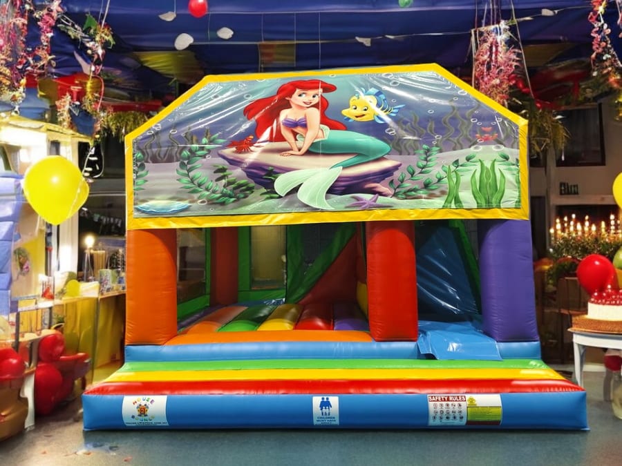 Mermaid Jumping Castle Open 5mx5m: The Ultimate Jumping Castle Experience Welcome to a world of endless fun and excitement with the Mermaid Jumping Castle Open 5mx5m Designed to captivate with every color of the rainbow, this eye-catching inflatable is perfect for both children and adults looking to enjoy a joyful day filled with laughter and play. Whether you're hosting a birthday bash, community event, or family gathering, this vibrant jumping castle promises hours of entertainment.